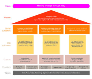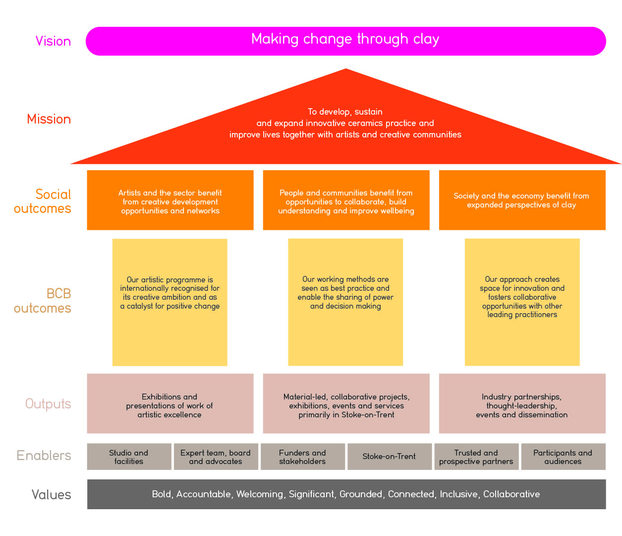 BCB is committed to delivering programmes and activities that develop, sustain and expand innovative ceramics practice and improve lives together with artists and creative communities. We measure the impact of our work through our organisational impact framework and commissioning external evaluation reports.